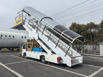 Электрическая пассажирская лестница имеет тяжелое шасси, низкий центр тяжести и хорошую устойчивость. Корпус закрыт съемной крышкой, что облегчает обслуживание каждого компонента. Шасси оборудовано четырьмя гидравлическими выносными опорами, обеспечивающими устойчивость кабины пассажирского лифта при посадке пассажиров в самолет. Шасси состоит из трансмиссии, рулевого управления, тормозной системы и кабины.